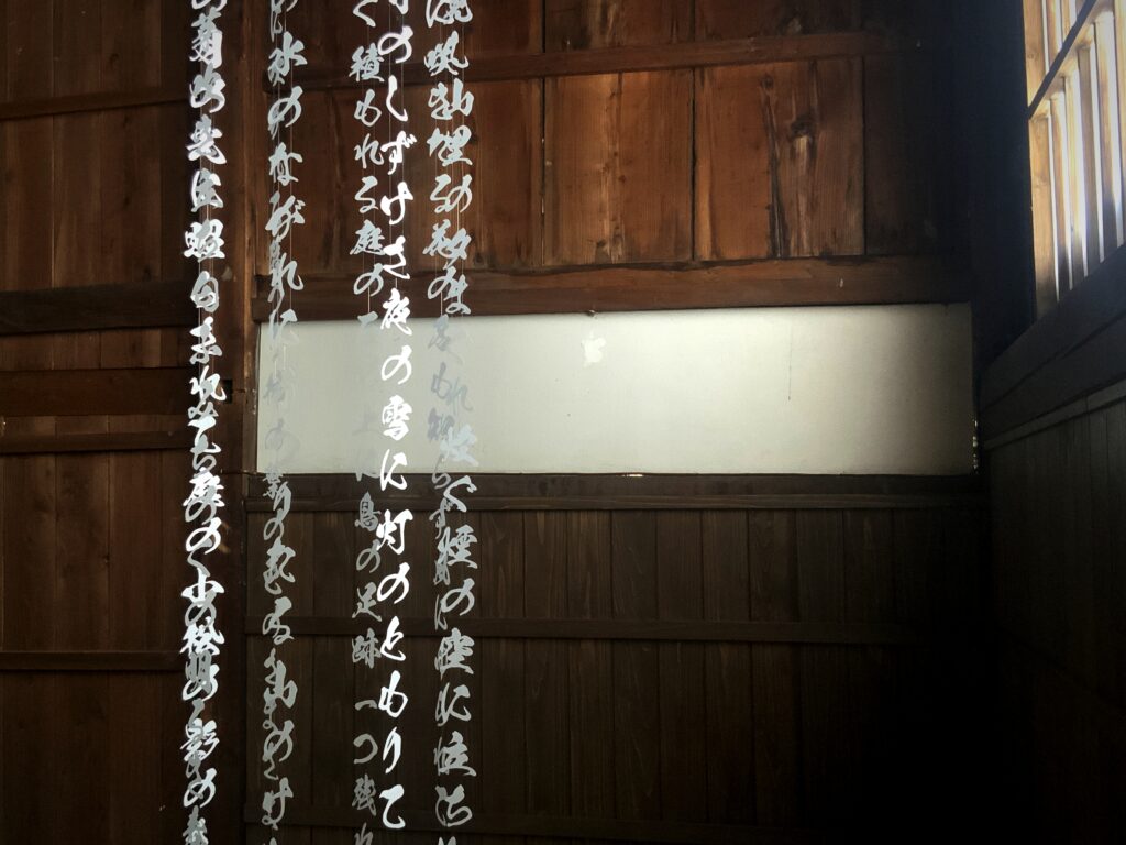 今回制作したモビールは、角舘出身の歌人「平福百穂」の歌集「寒竹」から抄出したもの。「言葉を紡ぐモビール」でしたので、和紙の風合いを残す素材を用いて制作しています。